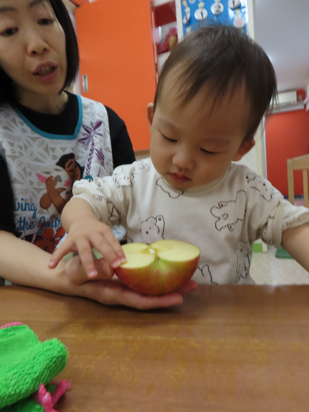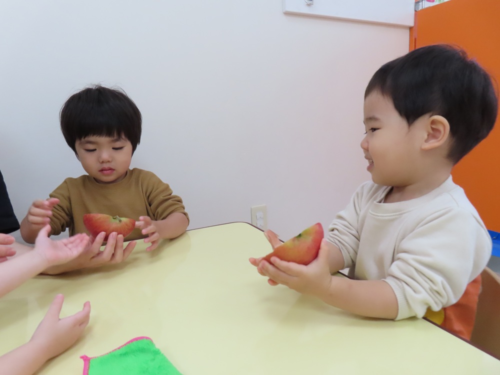 お子様たちが大好きな果物だったので、「りんごすき」「食べたことある」と言いながら、